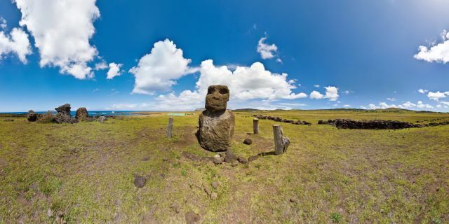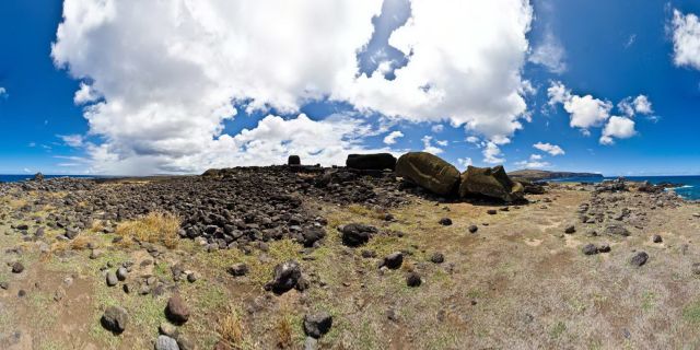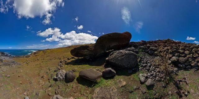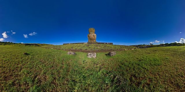 This is Ahu Tongariki, the largest Ahu on Rapa Nui. Its Moai were toppled during the island's civil wars and in the twen...