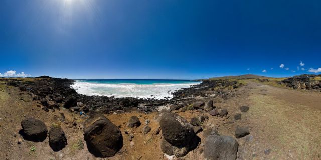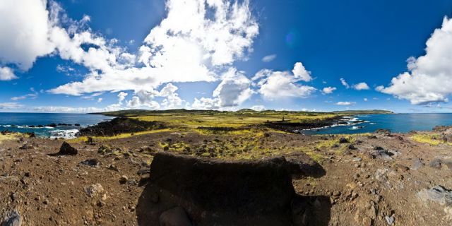 (lot of stuff to read directly on the pano) Orongo is a stone village and ceremonial center at the southwestern tip of R...