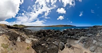 Anakena is a white coral sand beach in Rapa Nui National Park on Rapa Nui (Easter Island)