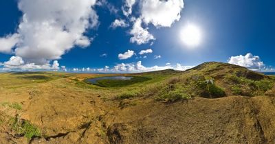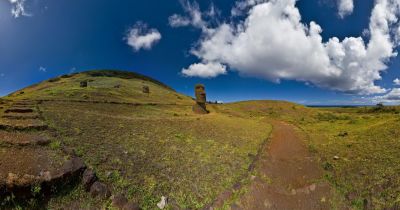 Volcano Rano Kau emerged after hundreds of thousands of years, followed by volcano Maunga Terevaka, which created the island as we know it through these eruptive processes. These three volcanos gave rise to tens of volcanic cones, providing Rapa Nui its typical relief, dotted with craters, soft hills, and lava fields. The three sides of the island triangle measure around 16, 17 and 24 Km, respectively.